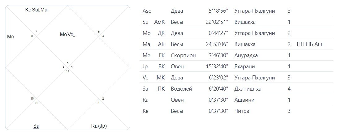 Особенно опасным это время было для тех, у кого в натальной карте по системе Джйотиш есть планеты в Овне и Весах. Карта Салтанат как раз такой случай.