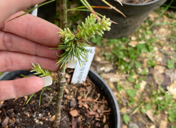 Молодая прививка - это прививка возрастом 1-2 года. Для полноразмерной ели или сосны это маленький саженец, а вот для микро-сорта это, фигурально выражаясь, сопля на палочке)