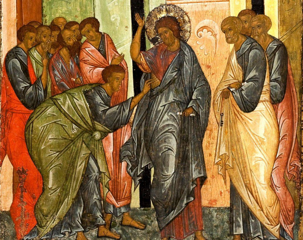 И тогда Христос приходит второй раз, на девятый день, и сподобляет апостола Фому личного разговора с Собой. И дозволяет ему прикоснуться к Себе. Тленному Фоме дозволяется соприкоснуться Нетленного.