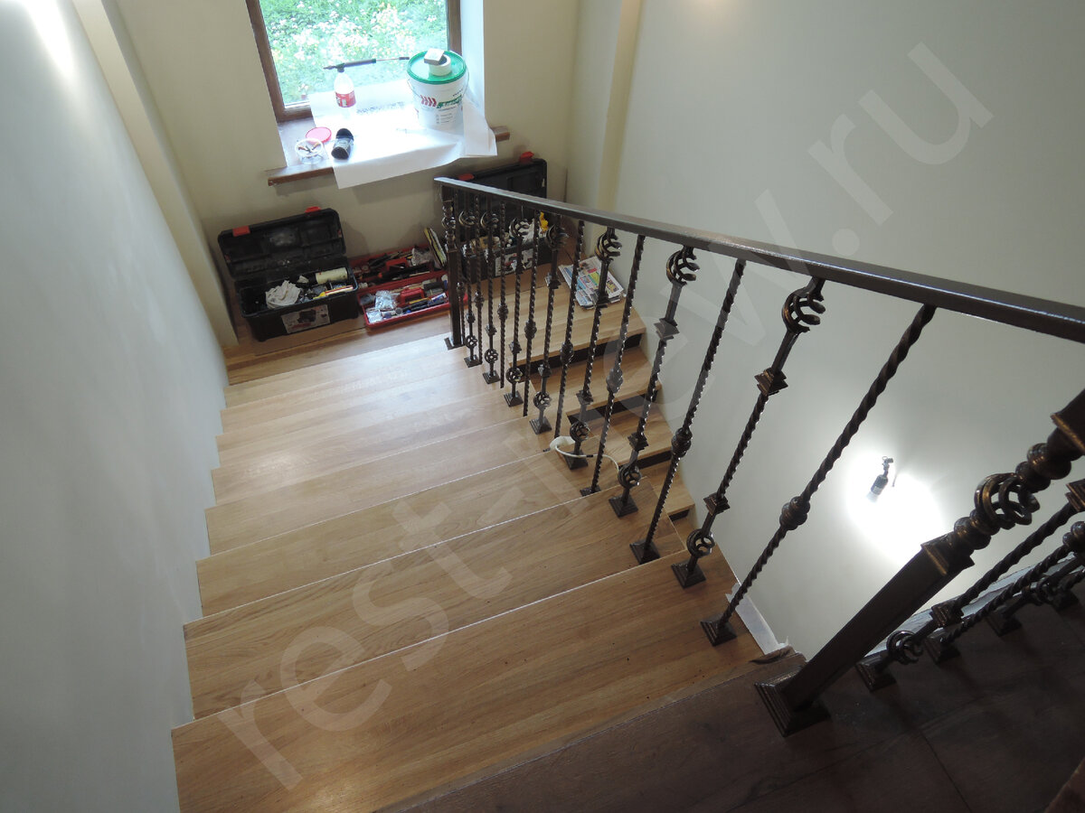Люди как могут стараются улучшить окружающий мир, из кожи вон лезут, лишь бы своими творениями приблизиться к создателю. Получается по-разному в диапазоне от полного разрушения до высокохудожественного шедевра. Важно, идя на дело, не забыть нимб, тогда всё славно получится. Обычный деревенский дом. Один подрядчик установил ступени из дуба, другой кованное ограждение. Ревностно радели все, но оценки получили разнополярные. К ступеням претензий не было пока не пришли кузнецы со сварочным аппаратом. Брызгами расплавленного металла испортили лак и дуб на всех ступенях. Не веря увещеваниям, что само рассосётся, владелец надеется на моё волшебство. Секрет волшебства прост: бормашиной удаляем уголь, как кариес, и пломбируем, как шпаклюем. Далее роспись по дереву и лакировка. Я хоть и не Бог реставрации, но и не последний реставратор после Бога.