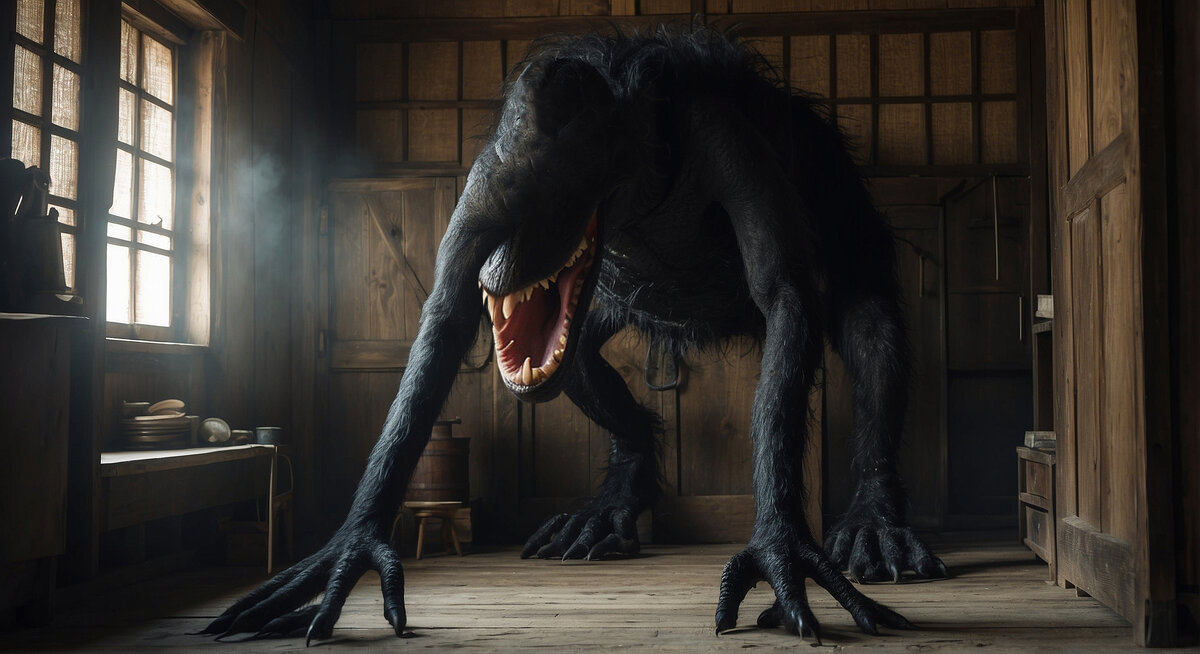 Второе. Внешне твари похожи на гибрид насекомого с гориллой. Тело покрыто чёрной, словно плешивой, шерстью. Большая голова напоминает лошадиную, только с огромной пастью на манер крокодила и расположена на подвижной, словно гусиной, шее. Передние конечности имеют пальцы с длинной ороговевшей пластиной, напоминающей неухоженный ноготь твоей подружки. При этом твари обладают уникальной способностью вытягивать свои конечности на длину до нескольких метров и отращивать длинный коготь, напоминающей клинок рапиры. Как правило пользуются они этим для того, чтобы определить, действительно ли потенциальная жертва не ведёт наблюдения за возможной точкой вторжения в хорошо укреплённую позицию. В данном случае – жилое помещение. Наши умники до сих пор не могут определить природу столь странных возможностей. Возможно, как только будет раскрыта тайна происхождения самих существ, так сразу же разберутся и с анатомией.