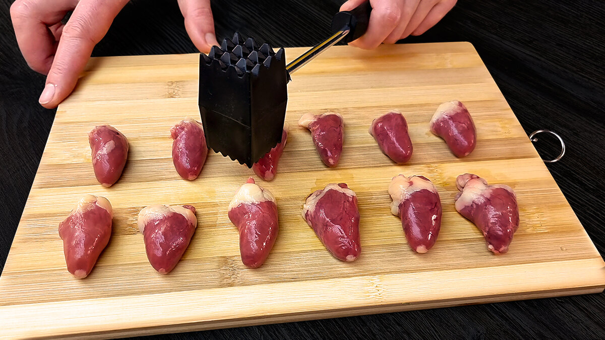 Блюда из субпродуктов мы не особо предпочитаем. Но куриные сердечки это просто находка, отбивные из них сочные и вкусные, трудно догадаться из чего они сделаны.