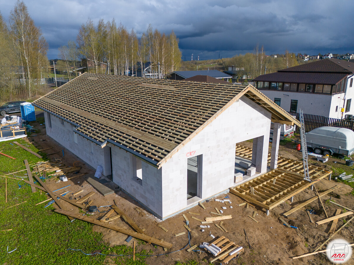 Делаем крышу – готова обрешётка под клик-фальц на одноэтажном доме из газобетона в Мистолово )(проект, похожий на "Микею")
