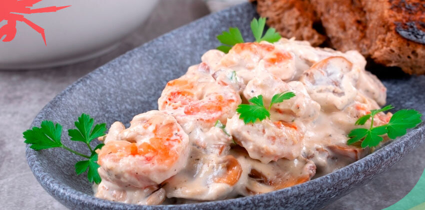 Рецепт: Креветки с грибами в сливочном соусе