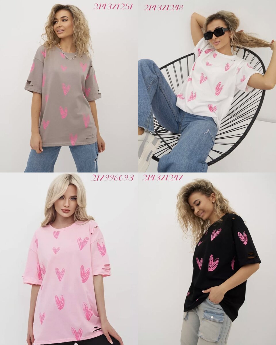 С наступлением тепла хочется стильно одеваться. В магазинах и маркетплейсах большое разнообразие футболок разных цветов и фасонов. Я выбрала одни из модных футболок на лето Футболки в размере оверсайз с популярным принтом в виде сердец и необычными разрезами представлены в нескольких цветах Футболки с интересным принтом идут в размере от 42 до 52. У продавца представлен большой выбор разнообразных цветов и принтов, где вы сможете подобрать себе подходящую футболку Футболки варенки в размере оверсайз подойдут абсолютно всем, их можно сочетать как с джинсами, так и с юбками. Отлично подойдут на летнюю прогулку с подругой