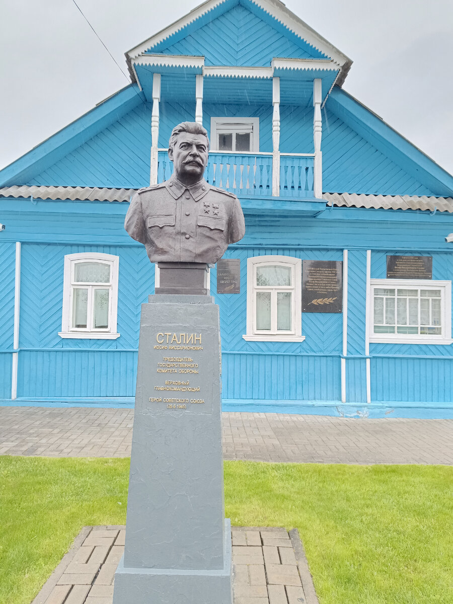 Всем привет 👋 На майских праздниках с мамой решили, что дома сидеть не хотим и поехали на Ржевский Мемориал Советскому Солдату. От города, где живут родители, до Ржева где-то час езды, может немного больше. Мы уже были на этом Мемориале 4 года назад. Тогда нас очень поразил комплекс своей красотой. Но тогда мы не успели посетить музей и в этот раз планировали туда сходить. Пока ехали, решили, что съездим еще в дом, где останавливался И.В. Сталина в 1943 году. А точнее начнем нашу экскурсию с этого дома в деревне Хорошево. Во дворе дома установлены бюсты Сталину, Еременко и уроженцам Ржевской области, получившим звание Героя Советского Союза. Мы взяли экскурсию, которую нам провел молодой человек. Он рассказал, что в 1943 году во Ржеве не было уже домов, пригодных для жизни. Этот дом был выбран для посещения Сталина, потому что особо то и выбрать нечего было. Сталин направлялся во Ржев для того, чтобы узнать причины таких больших потерь на фронте. И для встречи с командующим Калини