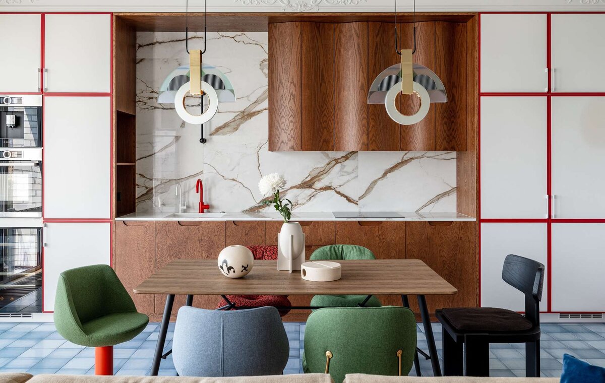 Необычные дизайнерские решения, авторская плитка, сочные оттенки — детали этого интерьера можно рассматривать бесконечно