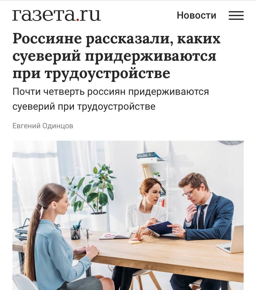 Исследование: почти четверть россиян полагаются на приметы и суеверия при устройстве на работу. Больше всего в них верят сотрудники банковской сферы и торговли.