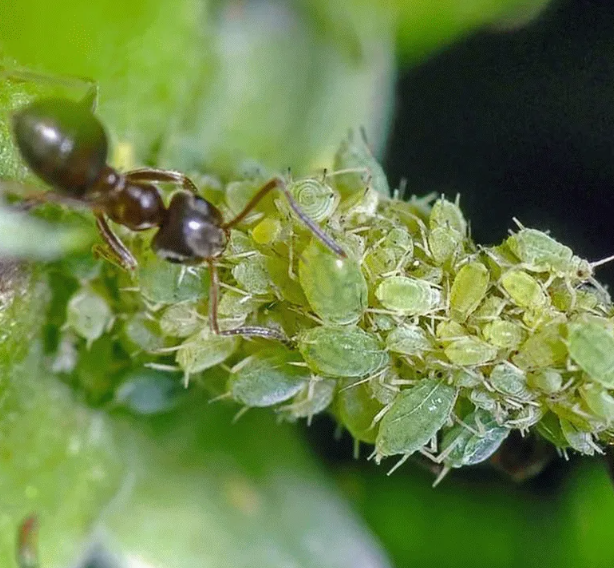 Известно, почему муравьи "дружат" с тлей. У тли тонкая кожа, которая постоянно испаряет влагу и заставляет ее непрерывно поглощать сок из растений. Так же, как корова производит молоко, тля выделяет медвяную росу, которую муравьи обожают. Поэтому муравьи ухаживают за тлями, как за своими домашними животными: переносят их на новые, молодые и сочные растения, защищают от врагов и, когда наступает зима, забирают их в свои муравейники.
