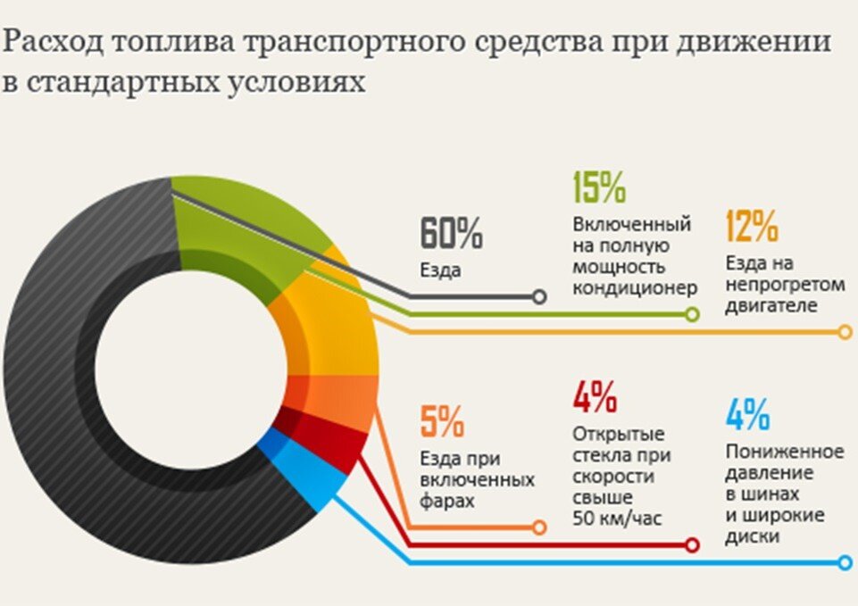 Ниже будет приведена интереснейшая информация по расходу топлива, которая многих удивит ибо мало кто смотрит на эту ситуацию с показанной точки зрения!!!... А вот и обещанная инфа: Двигатель потребляет топливо не на пройденные километры маршрута, а за прошедшее время с учётом моментальной нагрузки. Допустим, двигатель под некоторой нагрузкой на некоторых оборотах потребляет 5 литров топлива в час, то при данной нагрузке на скорости 20 км/ч. за час он проедет 20 км. и потратит 5 литров, что будет соответствовать расходу 25л./100 км., но двигаясь со скоростью 125 км./ч., при такой же нагрузке (Нм на коленвале), он проедет за час 125 км. (неожиданно, да?), а расход будет 4 л./100 км. Данное выше справедливо, если моментальная нагрузка не превышает номинальный крутящий момент двигателя на заданных оборотах. На повышенных передачах меньшая нагрузка на колёсах становится большей нагрузкой на валу, на пониженных - наоборот - большая уменьшается. Для примера, при движении по горизо