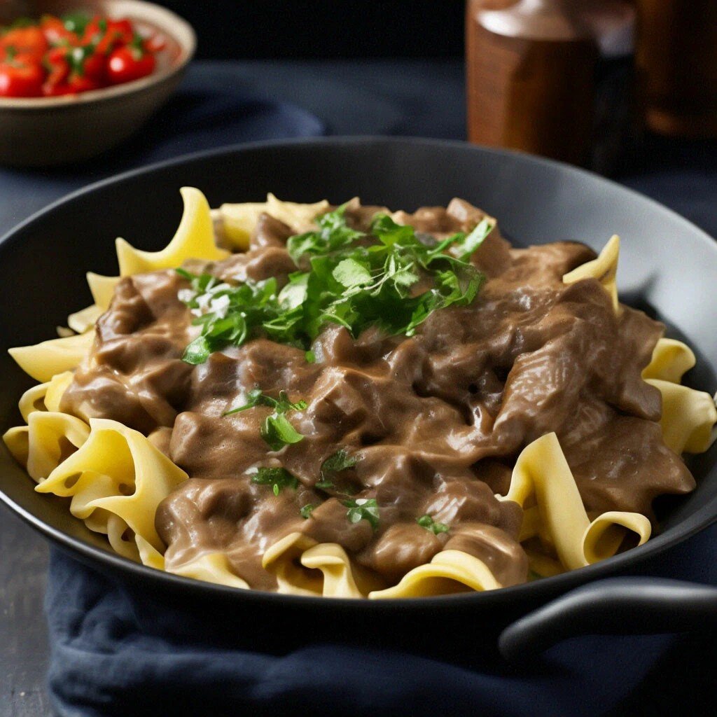 Продукты * 500 г говядины * 200 мл сметаны * 1 луковица * 3 ст.л. растительного масла * 400 мл воды * соль * перец * зелень Приготовление 1. Говядину промыть, обсушить, нарезать тонкими брусочками. 2. Лук очистить, мелко нарезать. 3. В сковороде разогреть растительное масло, обжарить лук до золотистого цвета. 4. Добавить к луку говядину, жарить, помешивая, 5 минут. 5. Добавить сметану, воду, посолить, поперчить по вкусу. Тушить под крышкой на слабом огне 30 минут. 6. Готовое блюдо посыпать зеленью. Приятного аппетита!