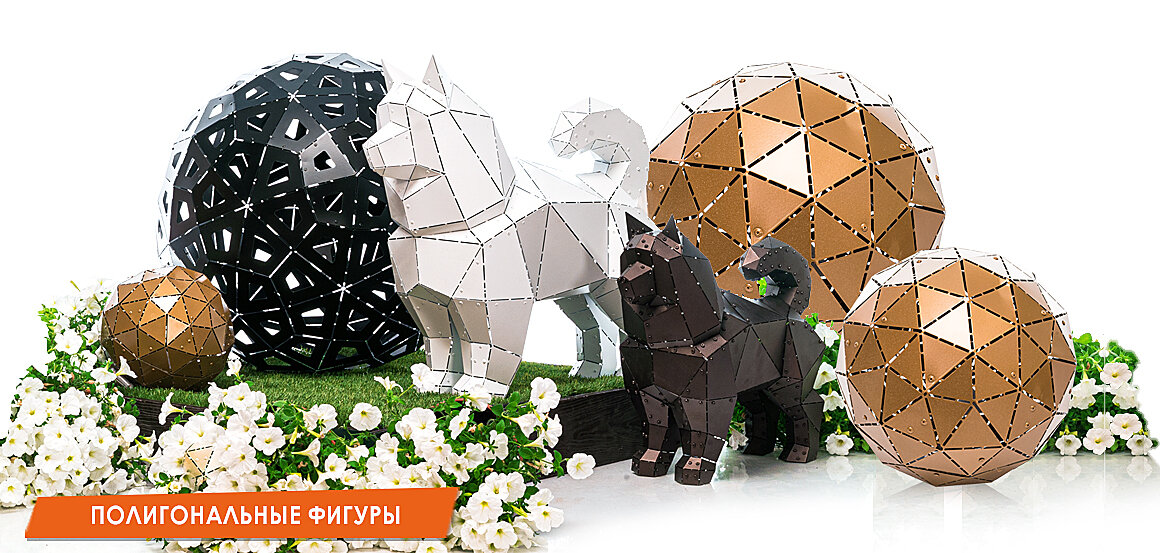 Полигональные фигуры могут быть выполнены в различных размерах - от небольших композиций до крупных скульптур высотой до 10 метров. Разнообразие форм и дизайнов позволяет выбрать идеальное сочетание для любого ландшафта или интерьера.
