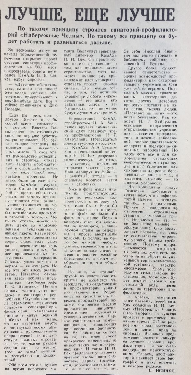 Читая старые газеты. Об открытии санатория-профилактория «Набережные Челны».