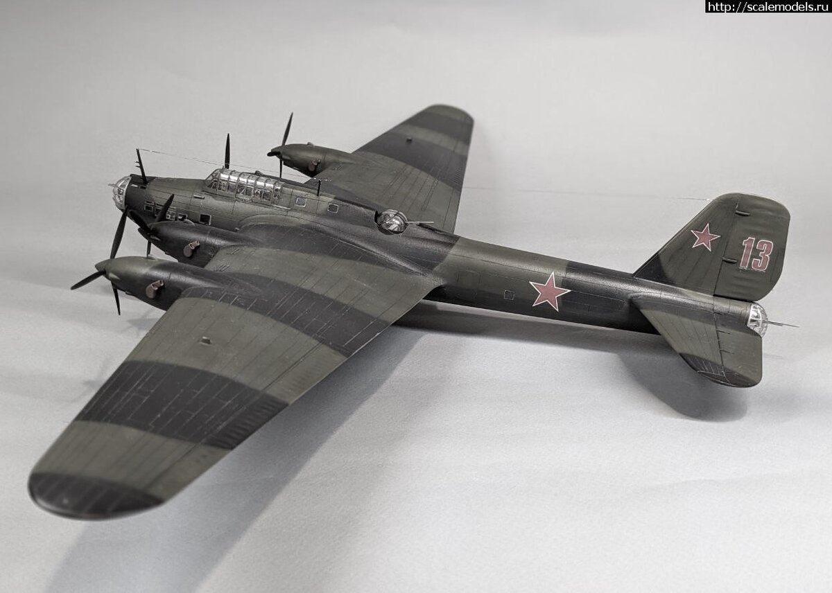 Звезда 1/72 Пе-8 с АЧ-30Б - боевой дизель Товарища Сталина Не сочтите название слишком пафосным, поскольку, как утверждают источники, конструктор дизельных авиамоторов М-30 А.Д.Чаромский, перед войной благополучно усаженный в шарашку, в 1942 году был отпущен на свободу, принят лично! И.В.Сталиным, произведен в чин генерала-майора, ему была вручена сталинская премия и выдано направление на моторостроительный завод для совершенствования и производства этих самых дизелей. Посему не вызывает сомнения, что товарищ Сталин внимательно следил за происходящим в советской авиапромышленности в целом, и за развитием дизельных авиамоторов в частности. Прочитать полную статью: http://scalemodels.ru/articles/16882-zvezda-1-72-pe-8-s-ach-30b---boevojj-dizel-tovarishha-stalina.html