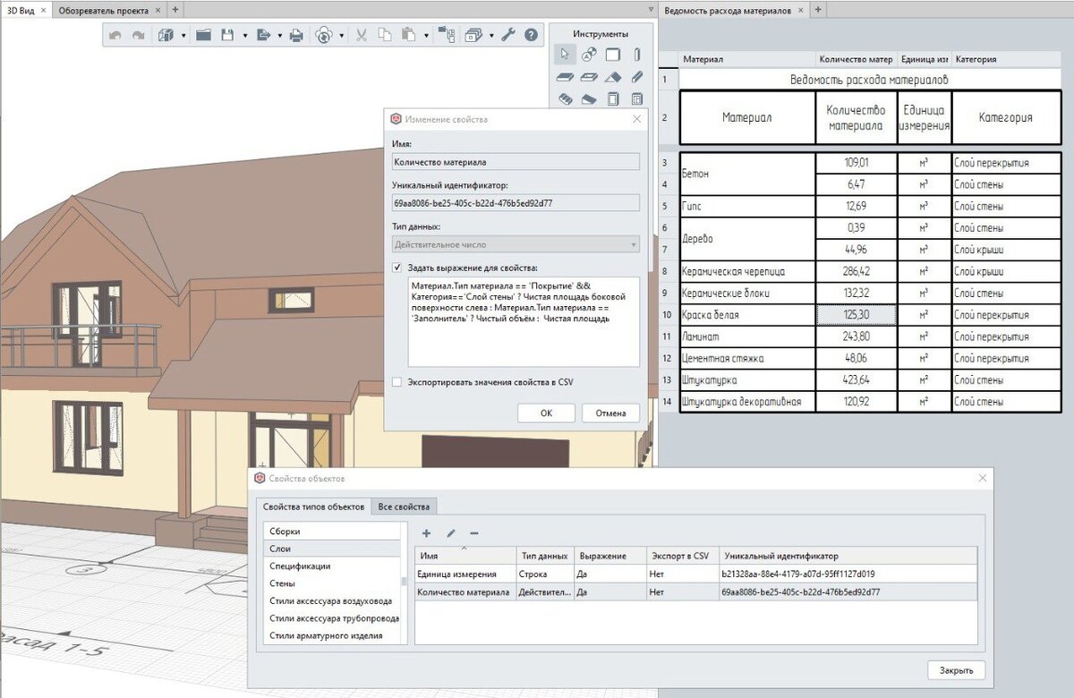 Ведомость расхода материалов понадобится при составлении ведомости объемов работ, расчёте сметной стоимости, для заказа материалов и т.д. Сегодня разберём пример, как можно составить ведомость расхода материалов в Renga с применением логических выражений. Задача: Часть материалов нужно посчитать в м3, часть в м2. Для материалов поверхности стен необходимо считать чистую площадь боковой поверхности, для материалов поверхности перекрытий – чистую площадь. Единицы измерения должны формироваться автоматически в зависимости от типа материала.