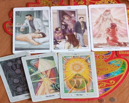 Для Весов наступил период завершения каких-то ситуаций. Скорее всего, это подведение итогов тех важных событий, которые происходили на ушедшей неделе. Начало недели Карта на позицию – Десятка мечей (пояснение – Семерка дисков и старший аркан Отшельник) По всей видимости, Весы не смогли полностью решить свои проблемы. И в начале недели вы завязнете в заботах по уши. Это окажется для вас слишком утомительным и может даже спровоцировать умственное выгорание. Такое состояние станет поводом сбежать в иррациональный мир фантазий. Давайте посмотрим, что по этому поводу нам скажут карты из колоды Кроули. Семерка дисков указывает на кризис, который, в первую очередь, коснется вашего материального благополучия. Но карта также может указывать и на упадок сил. Отшельник говорит о депрессии и желании уединиться, сбежать от реальности. Возможно, на вас навалятся и проблемы со здоровьем, и недопонимание с партнерами, и ощущение, что движетесь не в том направлении. Так что пришло время переосмыслить п