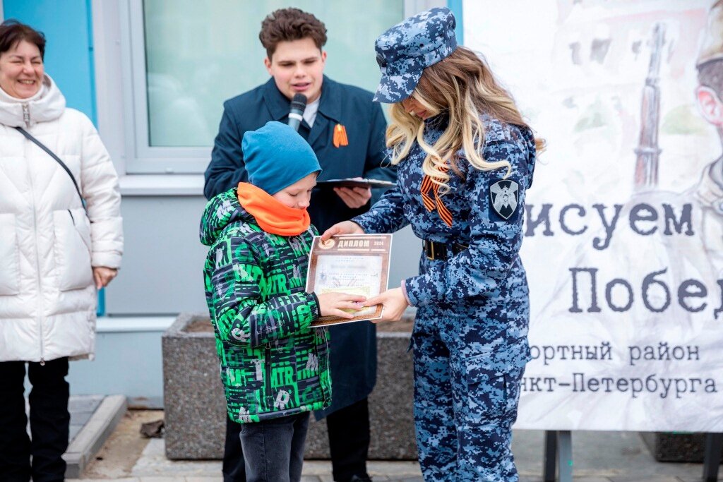 В ходе церемонии торжественного завершения музыкально-поэтического фестиваля «Эстафета вечной жизни», сотрудники Росгвардии вручили дипломы юным участникам патриотической акции «Рисуем Победу 2024».