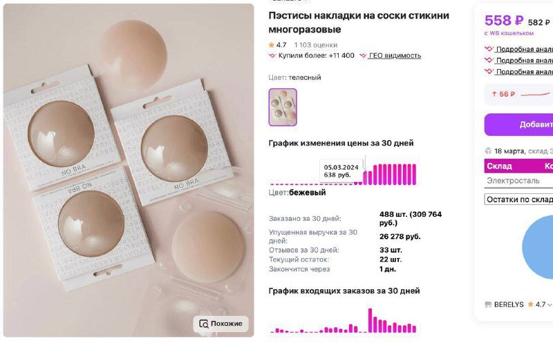 Пэстисы накладки, возможно, звучат как нечто экстравагантное, но благодаря творческому подходу к рекламной кампании они быстро приобрели популярность. В рамках кампании продвигали видео в формате Reels в Instagram* (запрещенная в РФ социальная сеть). В результате ролик набрал 610 000 просмотров, которые привели к 8 000 переходов по артикулу товара. Селлер получил 363 заказа и выручку 239 000 рублей. Давайте разберемся, что привлекло внимание аудитории.