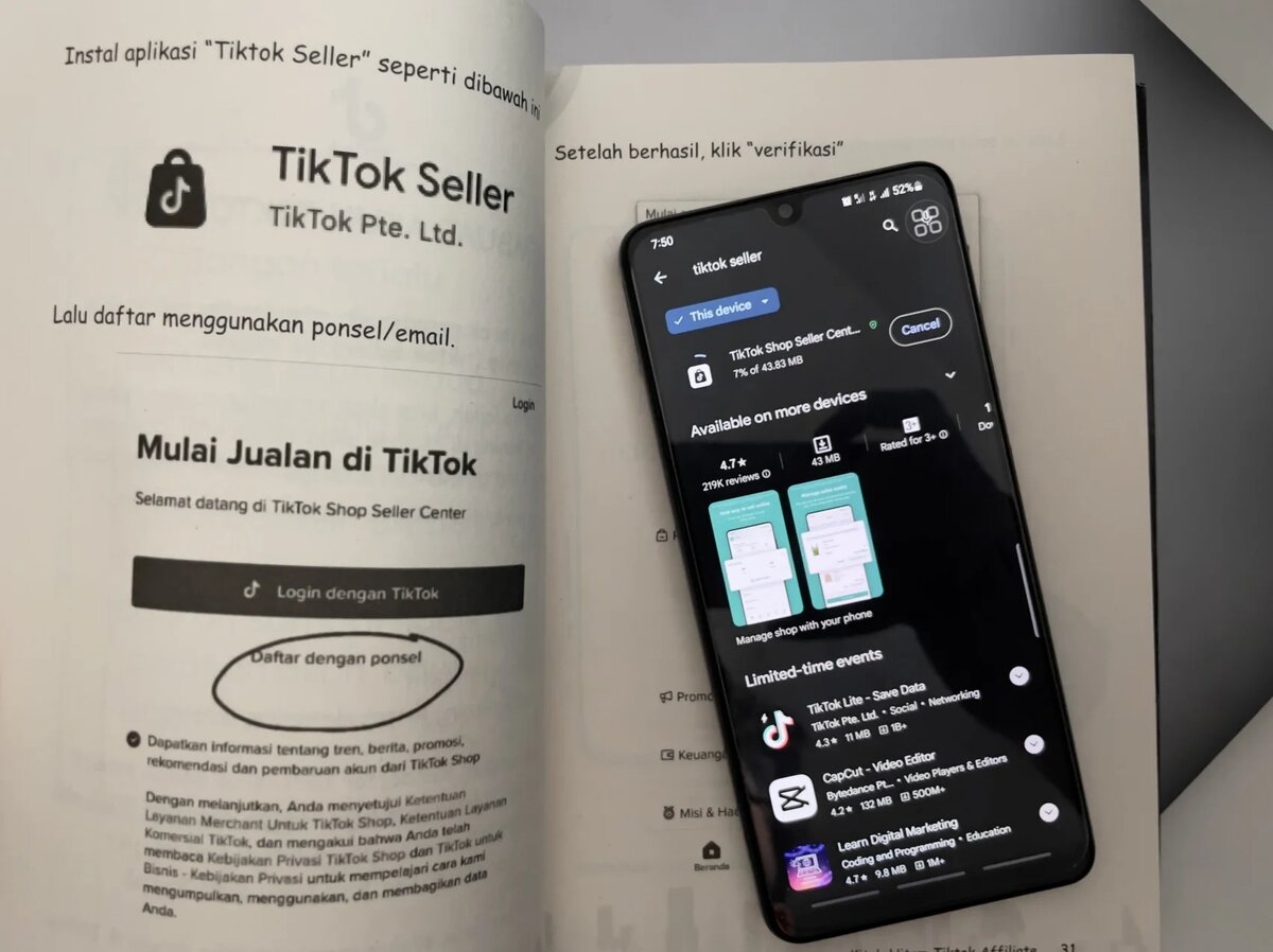 Эти и последующие рекомендации взяты из книги «Kitab Hitam TikTok Affiliate». Хотя не могу утверждать их абсолютную верность, попробовать их стоит. Книга написана на доступном (индонезийском) языке и посвящена теме «TikTok Seller». Однако в этой статье не буду затрагивать TikTok Seller, так как приложение недоступно в российском AppStore. Но если вы в другой стране, где есть доступ, то скажу следующее — при регистрации поменяйте страну с дефолтной US, иначе потом придется предоставить паспорт гражданина US и перерегистрироваться с использованием другой почты.
