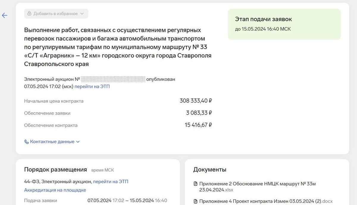 Краевое министерство дорожного хозяйства и транспорта собирается вновь запустить в Ставрополе маршрут № 33. Соответствующееизвещениена проведение торгов по контракту ведомство разместило на портале госзакупок 7 мая. Начальная цена самого контракта — 308 333 рубля. Из приложенных документов следует, что схема движения маршрута будет отличаться от предыдущей — «тридцать третий» будет следовать от «с/т Аграрник (ул. Черниговская) на юго-западе города до остановки «12 км» на северо-западе. Его маршрут будет частично повторять № 47, 9 и исчезнувший 12 (см. схему). На линию планируют выпустить до 22 автобусов среднего класса. Все они должны иметь 18 посадочных мест, быть доступными для пассажиров-инвалидов, а также оснащёнными системой ГЛОНАСС. Планируемый пассажиропоток на маршруте № 33 — 3,2 млн. пассажиров за 8 месяцев 2024 года. Завершить аукцион Миндор Ставрополья планирует 15 мая. Напомним, общественный транспорт с маршрутов № 33 и № 33 мпропалв Ставрополе ещё в июне прошлого года,смен