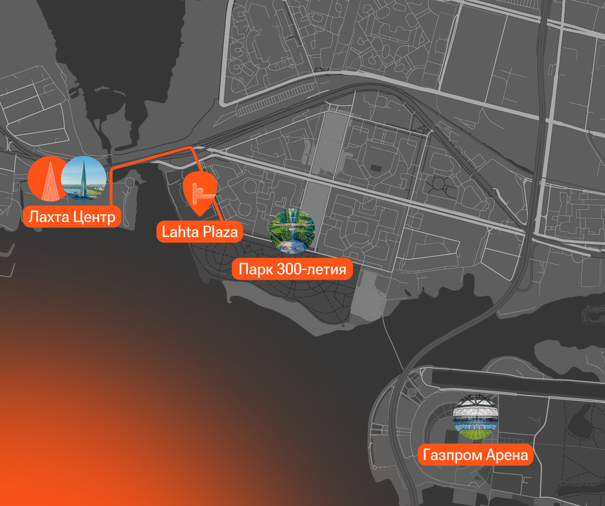 Акватория залива, «Лахта-центр», «Газпром Арена» и огни города, загорающиеся вдали, пока солнце неспешно заходит за горизонт, преображая привычный дневной ландшафт, — романтика обеспечена!