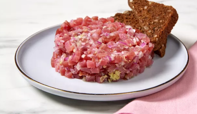 Принято считать, что тартар готовят исключительно из говядины, однако это не так. Важно понимать, что название «тартар» относится не к мясу, а к способу нарезки ингредиентов для блюда. Именно поэтому готовить его можно из рыбы или даже овощей. В этом рецепте мы приготовили тартар из тунца. Если вы не любите сырую рыбу, можно заменить ее копченой. Подавать блюдо лучше сразу из морозилки, пока оно не нагрелось. Приготовление: