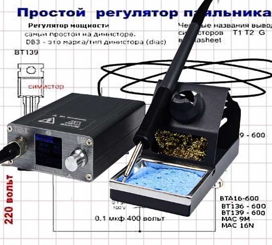 Если у вас недорогое паяльник, который не имеет регулировки температуры. И он постоянно перегревается. Можно попытаться простыми методами частично решить эту проблему. Почему частично. Потому что, если это можно было решить всё так просто, то никто бы не покупал дорогие паяльные станции. Ну даже это решение всё-таки намного лучше чем подключать паяльник напрямую в сеть . И один из самых простых методов это включить диод разрыв взрыв одного из проводов паяльника. В разрыв фазового или нулевого провода это значение не имеет. А вот имеет значение какой диод Вы будете использовать. Для большинства паяльников подойдёт Очень популярный и дешёвый Диод 1N4007. И параллельно нему поставить кнопку с фиксацией чтобы можно было периодически шунтировать Диод. Но есть также простой и более интересный способ. Который позволит вам плавно регулировать температуру жала паяльника. Схема довольно простая которую сможет повторить даже начинающие радиолюбитель. И состоит она всего лишь из нескольких н