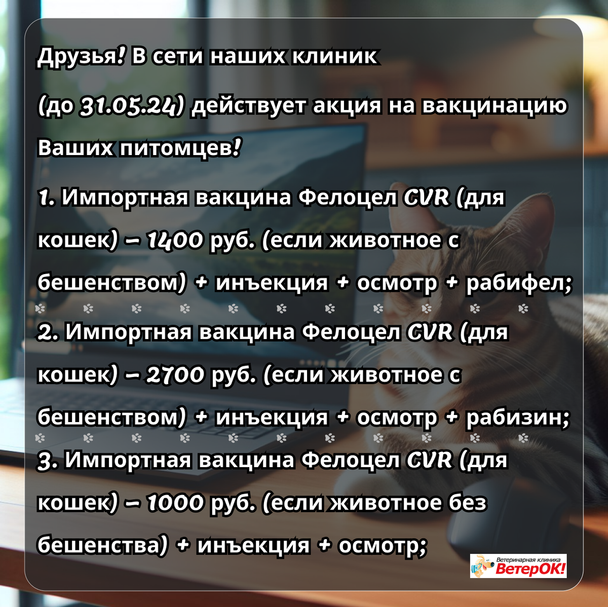 Фелоцел – это комплексная вакцина, предназначенная для профилактики ряда опасных заболеваний у кошек. В её составе присутствуют компоненты, которые стимулируют иммунную систему кошки к развитию защиты против вирусов, вызывающих панлейкопению (кошачий чумой), вирусный ринотрахеит и калицивироз. Все эти заболевания могут привести к серьёзным осложнениям и даже смерти животного, поэтому вакцинация является критически важной для здоровья и благополучия вашего пушистого друга.