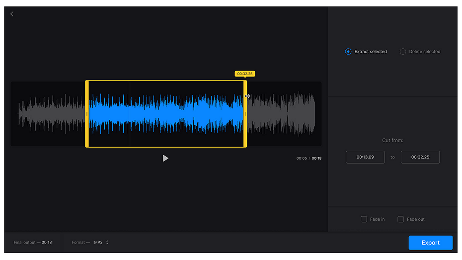 Одним из самых популярных сайтов для обрезки аудио является Mp3cut.net. Сервис предлагает интуитивно понятный интерфейс. Вам нужно будет загрузить требуемый трек, установить границы обрезки и после скачать готовый фрагмент. С помощью сервиса вы можете выделить аудио из видеоклипа, добавить/уменьшить громкость, скорость воспроизведения и т. д. Для расширенных настроек предусмотрена опция медленного начала и затухания — громкость трека постепенно нарастает в начале, а в конце постепенно снижается.
