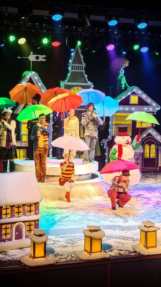 Неоднозначные отношения складываютс у меня с Мери Поппинс... В детстве я прям терпеть не могла эту Леди Совершенство в исполнении Натальи Андрейченко. Такая надменная, такая самовлюблённая. Но при этом, безотносительно героев, обожаю этот советский мюзикл до слез умиления. Да каких там слез, на песне "Ветер перемен" я реву в три ручья. Что касается постановки в Театре Роста... Сюжет показался мне сумбурным, и если б я не смотрела фильм +100500 раз, то вряд ли поняла происходящее на сцене. Дз Например, взаимодействие няни с детьми, на мой взгляд, минимальное. Не понятно, почему они так влюбились в няню, если она бесконечно занята соседскими делами. Зато очень, ну прям очень много второстепенных персонажей с раскрытием истории каждого из них. Почтальон долго страдает из-за болезней, старости и ещё чего-то. Собаки ещё больше страдают из-за любви и отсутствия взаимопонимания с хозяйкой. Итд итп... Чисто моё мнение, я б сократила все эти сомнительные стенания и добавила бы детей. Вед