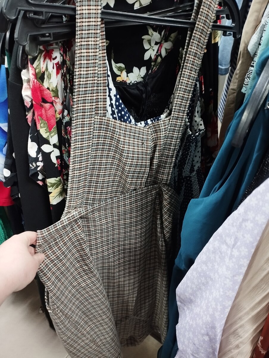 Всегда была небольшим фанатом сарафанов, особенно нравились они в пору, когда училась в университете. Весной это отличный способ сочетать и удобство, и официальный стиль, т.к. они отлично сочетаются и с рубашками, и с однотонными футболками. Нашла неплохой клетчатый сарафан и в секонде, состояние у него было хорошим, не увидела никаких следов носки, а при действующей скидке цена была бы не более 600 рублей.