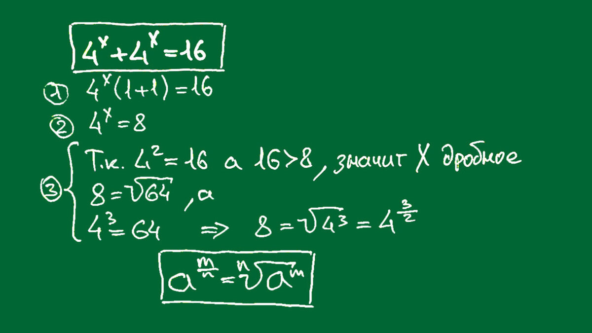 Как учили Математике в средней школе при СССР. Пример уравнения с решением и формулой преобразования из школьного задачника: ...Этот пример, лишний раз, свидетельствует о том что Математика -наука, большей частью, "Без предметная". Например: Попробуйте четвёрку умножить на себя не целое число раз? Не выходит? А математическое решение есть! ;-)