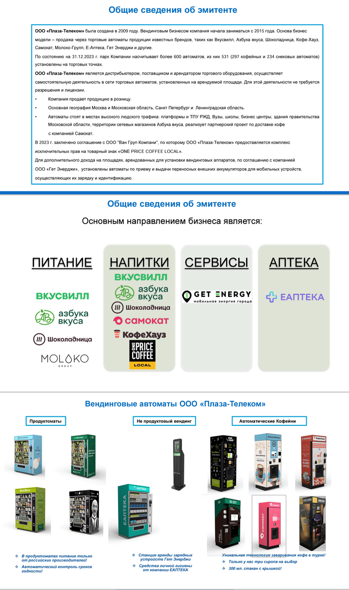 ☀️ Доброе утро, дорогие читатели! Новые выпуски потихоньку просыпаются после праздников, сегодня есть чем порадовать любителей высокодоходных бумаг :) ✅ Пара выпусков, которые сегодня можно добавить в портфель: 1️⃣ ПЛАЗА - ТЕЛЕКОМ БО-02 (🅱️🅱️➖) 🔢 Тикер: $RU000A108E80 🔸 В выпуске имеется возможность досрочного погашения 🔸 Сектор Роста Московской Биржи Второй выпуск эмитента, посвятившего себя вендинговым автоматам начнет сегодня торги после обеда. Первичка, к слову, также сегодня, но выпуск крайне небольшой, а четверть забирает себе МСП - Банк. Стоит ли биться за купон в 20%, который потихоньку становится нормой жизни на какое-то время, вопрос риторический :) Да еще и досрочным погашением подпирают. Дебютный выпуск компании БО-01 $RU000A106YD5 начал торги в сентябре прошлого года, и даже при относительно невысокой купонной ставке успешно балансировал около номинала. 200 миллионов рублей, из которых он состоит, имеют плановую дату погашения в 2026 году. А вот о деятельности ком