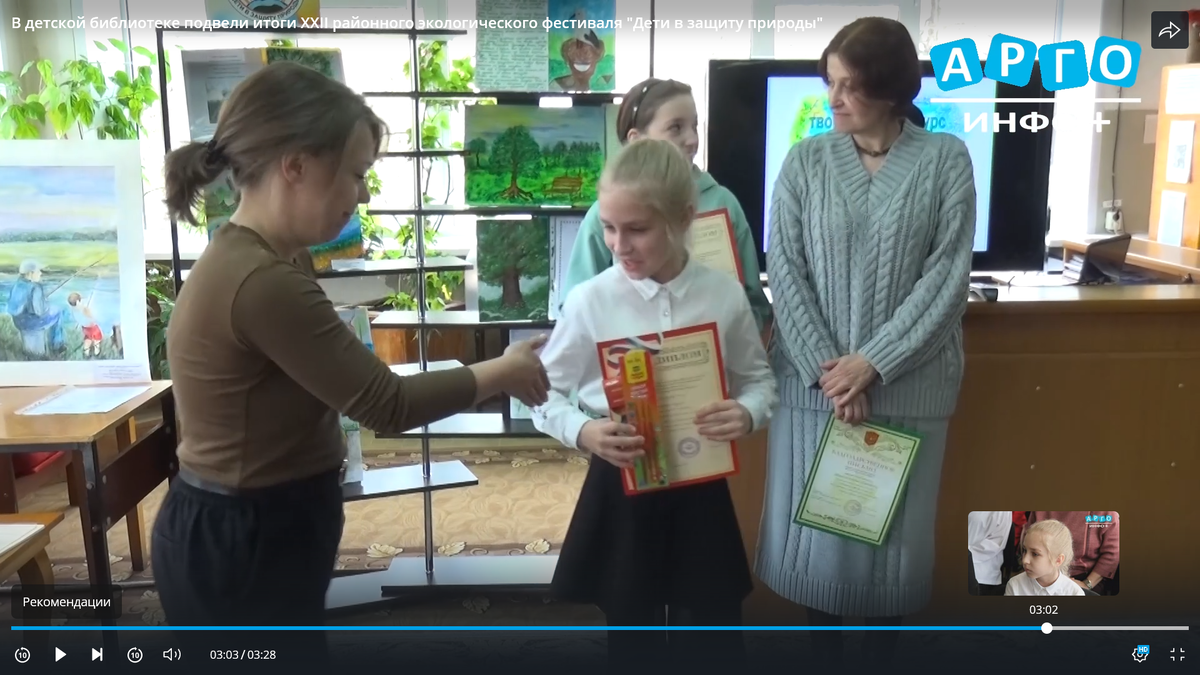 rutube.ruВ детской библиотеке подвели итоги XXII районного экологического фестиваля "Дети в защиту природы"
