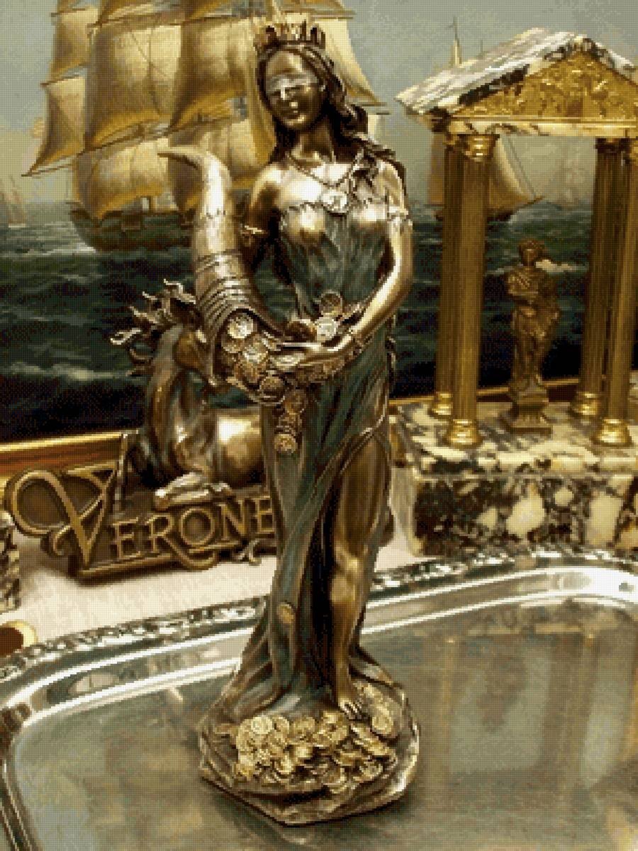 #символика Символическое воплощение счастья. Первоначально богиня женщин и оракулов, позднее ее функции отождествлялись с функциями греческой богини Тихе и в конечном счете свелись к обозначению переменчивого человеческого счастья, удачи. Чаще всего ее представляли с флюгером-рулем и рогом изобилия в руке, стоящей на шаре или колесе (колесо фортуны), с парусом или с крыльями, гонимою туда-сюда переменчивым ветром удачи. Христианство частично преобразовало представление о неуловимой богине в представление о неисповедимых путях Господних, о Божьем Промысле, о Провидении, а частично — противопоставило несомненной добродетели (например, постоянству) и оценивало негативно. В Восточной Азии (Япония, Китай) счастье представляли и символизировали Будда-толстяк (Хотей) и другие из семи богов счастья.