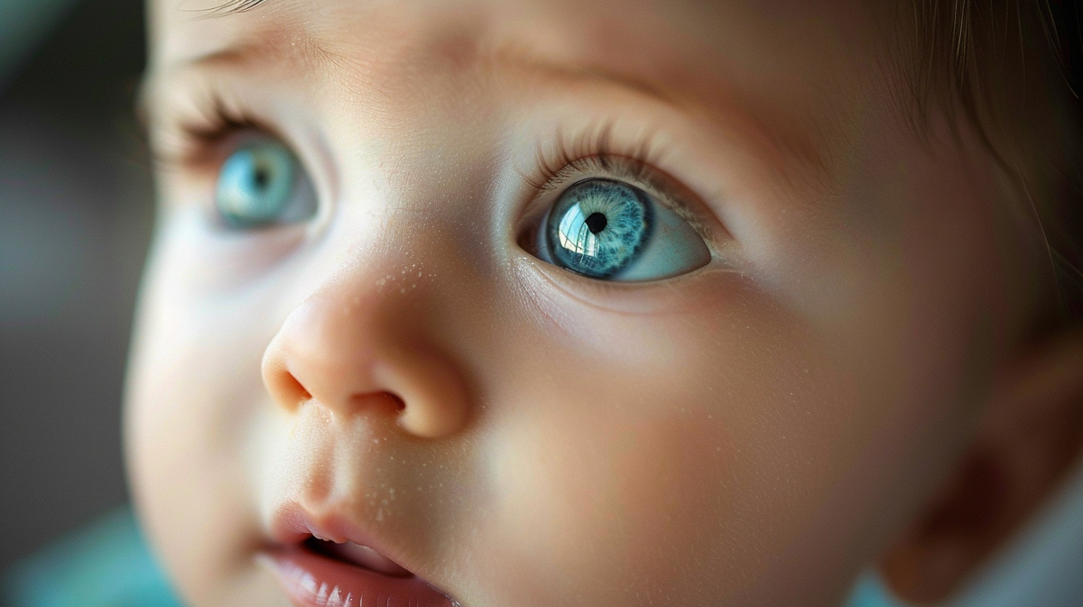 Когда малыш появился на свет его глазкам еще требуется время для того, чтобы окрепнуть, именно поэтому окружающий мир для него еще не четкий, а тона проявляются только в черно-белой цветовой гамме, сначала красный, потом желтый, потом зеленый. Тем не менее, его зрительные способности стремительно развиваются и к 6 месяцем ребенок уже видит цветную картинку, может фокусироваться глазками на предмете и учится переключать зрение с близких объектов на дальние.
