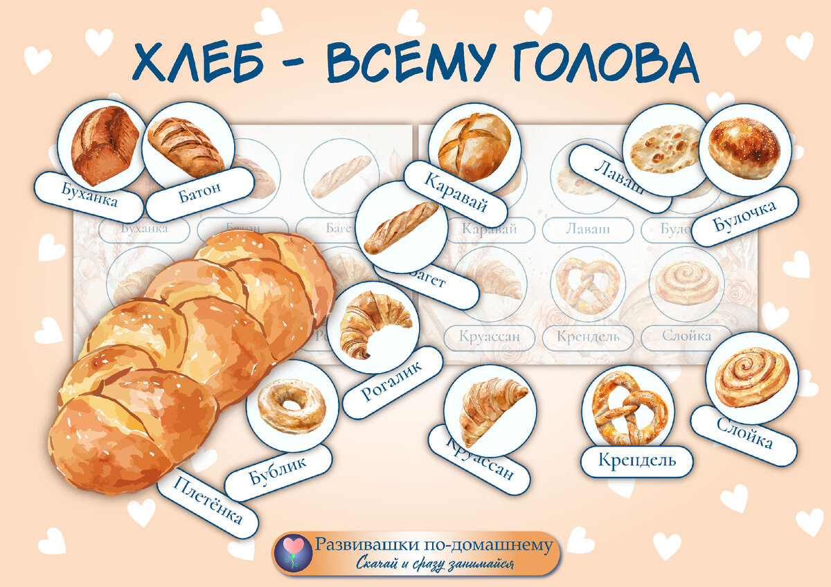 Хлеб всему голова: как легко выучить с детьми названия хлебобулочных изделий (3 шаблона игр)