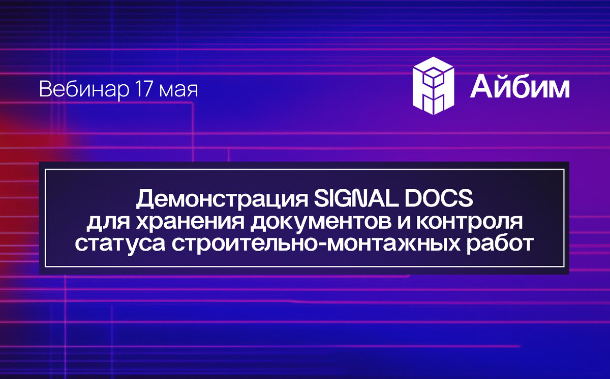 И снова мы возвращаемся к серии вебинаров с обзорами сред общих данных. Уже в эту пятницу поговорим о СОД SIGNAL DOCS. 🗓️ 17 мая в 11:00 (МСК) мы рассмотрим функционал системы в контексте четырех основных блоков, необходимых для организации СОД: SIGNAL DOCS — стремительно развивающийся продукт, объединяющий в себе СОД и дополнительные модули для контроля статуса строительно-монтажных работ. Мы покажем вживую интерфейс системы и ее возможности, а также ответим на все ваши вопросы. 🎙 Спикеры: • Анастасия Ельфимова, директор консалтинговой практики, Айбим • Сергей Казанцев, директор по цифровому строительству, SIGNAL Участие бесплатное. Регистрируйтесь по ссылке.