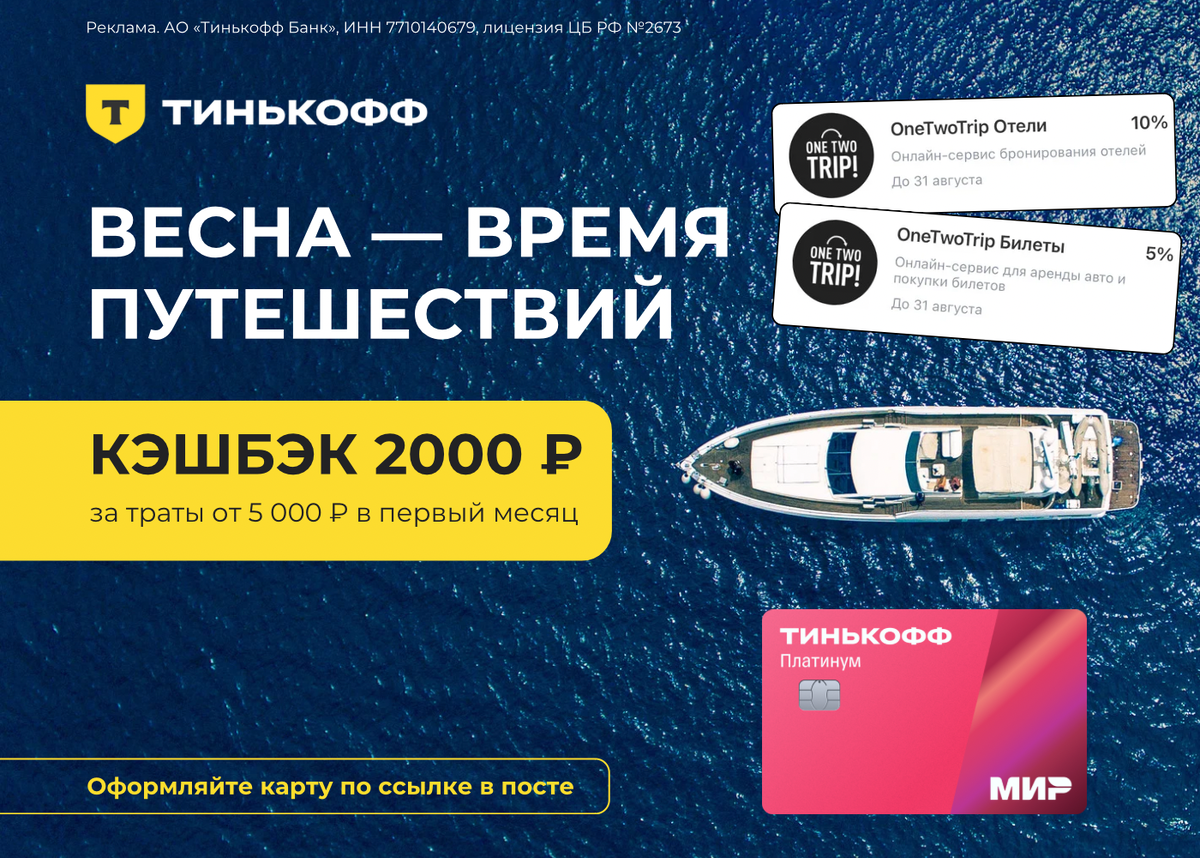 Тинькофф Платинум по выгодным условиям Вместе с картой вы получаете: 🎁кэшбэк 2 000 ₽ за траты от 5 000 ₽ в первый месяц; 💥кэшбэк 1% баллами на все покупки и до 30% по спецпредложениям; 💥кредитный лимит до 1 000 000 ₽; 💥беспроцентные рассрочки до 12 месяцев у партнеров банка. Карта спасает в трудные моменты, принесет выгоду и новые возможности. 🚀 Для оформления переходите по ссылке https://tnkff.prfl.me/65d9763dd2b1603f98ee143b/e91o72?erid=2VtzqxXeq4v 💳 Реклама. АО «Тинькофф Банк», ИНН 7710140679, лицензия ЦБ РФ №2673 https://tnkff.prfl.me/65d9763dd2b1603f98ee143b/e91o72?erid=2VtzqxXeq4v