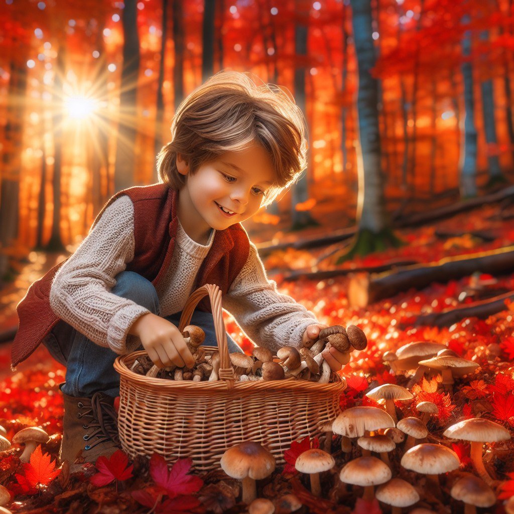 Жил-был мальчик по имени Иван. Его вьющиеся каштановые волосы всегда путались, а глаза цвета лесного ореха светились любопытством и добротой. Однажды осенним днем, когда лес был усыпан золотым и алым ковром опавших листьев, Иван решил собрать грибы. Он забрел в глубокий, таинственный лес, где деревья стояли так густо, что сквозь их ветви едва пробивался свет. Лес был тих, как будто все его обитатели затаили дыхание, следя за каждым шагом мальчика. Иван собирал грибы, не замечая, как углубляется все дальше и дальше, пока не обнаружил, что заблудился. Не найдя дороги домой, он устал и, прислонившись к стволу древнего дуба, заснул. Когда Иван проснулся, небо уже покрылось звездами, а луна освещала его путь тусклым светом. Мальчик обнаружил, что лежит не у дуба, а на пороге странного домика. Дверь скрипнула, и из темноты вышла старуха с крючковатым носом и острыми, как бритва, зубами. Это была баба Яга. Домик был полон теней и странных звуков. По углам плескались тени, а в глубине ком