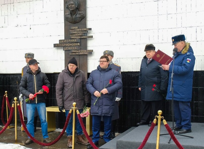 19 февраля в Москве состоялось знаменательное событие. На доме, в котором провела свои последние годы выдающаяся женщина, ветеран Великой Отечественной войны, герой Советского Союза Екатерина Илларионовна Дёмина установили памятную доску, на которой скульпторы запечатлели её отважный лик. – Мы собрались по историческому случаю, – сказал член Центрального Совета Всероссийской общественной организации морских пехотинцев «Тайфун» Юрий Бабатов. – Сегодня состоялось открытие памятной доски в честь Героя Советского Союза Екатерины Илларионовны Дёминой. Её имя золотыми буквами вписано в историю российского флота и морской пехоты. Она с достоинством прошла войну и, несмотря на возраст, проявила невероятное мужество. Войну Катя Михайлова (девичья фамилия Дёминой) встретила в поезде. Школьница ехала из Ленинграда на каникулы к брату, военному лётчику, в Брест. После Смоленска состав попал под обстрел немецкой авиации. Впечатления от того первого столкновения с ужасами войны были настолько сильны