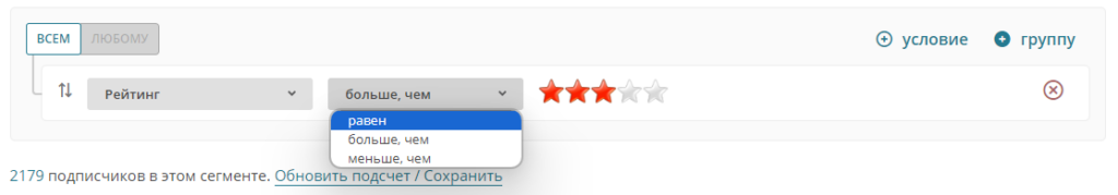 В отличие от таргетированной рекламы, для сегментации email-рассылок необходимо самостоятельно собирать данные о подписчиках. Но делать целые опросные листы и анкеты в форме подписки для выявления интересов и потребностей аудитории — не самая лучшая идея. Как же поступить? Как сегментировать базу для персонализации email-рассылок, когда у вас нет ничего, кроме email-адресов? Делимся лайфхаками. Если вы уже некоторое время работаете с базой подписчиков и проводите рассылки, то, во-первых, вы уже можете сегментировать базу на основании их активности и вовлеченности в ваши письма. Причем это можно сделать несколькими способами. В зависимости от активности подписчика в рассылках сервис DashaMail присваивает некий рейтинг каждому подписчику, который характеризует его вовлеченность в рассылки. Когда вы импортируете нового подписчика в базу ему присваивается рейтинг в 2 звезды. Каждый раз при отправке рассылки с его виртуального счета, определяющего рейтинг, списываются баллы, но если подписч