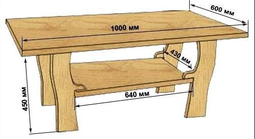Первым делом выбирают материал (или несколько), форму и размер журнального столика. Если опыта в создание чертежей нет, то эту часть работы пропускают, так как существует более простой выход — использование готовых схем, которые легко адаптировать под нужные размеры. Второй вариант — приглашение профессионала для изготовления эскиза, но эта идея не слишком привлекательна, так как обещает дополнительные траты.