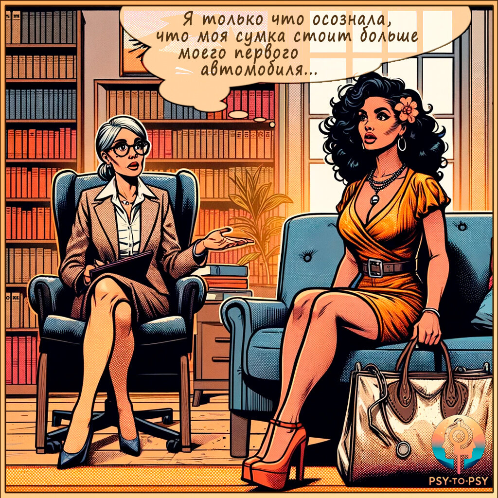 Данный #psytopsycomics и пост к нему возник на основе реального инсайта клиента одного моего знакомого психолога (инстайт этот доступен широкой общественности с разрешения самой клиентки). Одной из прорабатываемых тем, в рамках которой и возник данный инсайт, как вы наверное догадываетесь, было чрезмерное увлечение шоппингом и претензии, которые к ней по этому поводу предъявлялись супругом. Не вдаваясь далее в детали данного конкретного кейса, в целом можно сказать, что основными двигателями "безумного" шоппинга являются чаще всего эмоциональные потребности. Многие люди совершают покупки, пытаясь заполнить внутреннюю пустоту, компенсировать неудовлетворенность в личной жизни или карьере, или просто как способ самоутешения. С другой стороны, в нашу эпоху потребления и культуры мгновенного удовлетворения потребностей, шоппинг часто становится не просто средством приобретения необходимого, но и способом самовыражения, способом борьбы со стрессом и даже механизмом поиска смысла. Покупка до