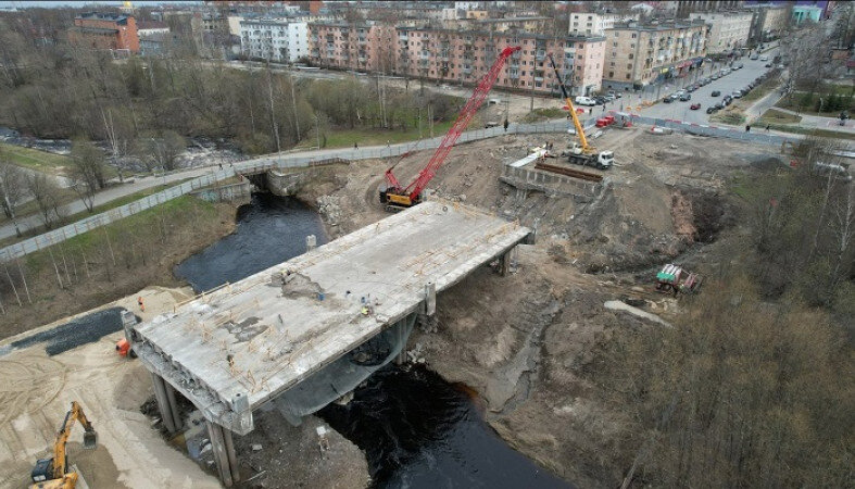 Пролеты моста на улице Мерецкова в Петрозаводске демонтируют