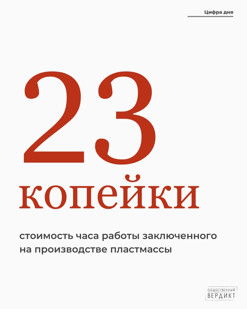В настоящее время в Перми юристы при поддержке «Общественного вердикта» помогают заключенному Ивану Звереву оспорить сумму месячной заработной платы. Она составляла 39 рублей 67 копеек! Именно столько заработал заключенный в колонии №10 Пермского края за один месяц подсобной работы в цеху по производству пластмассы. «Получается, час работы
