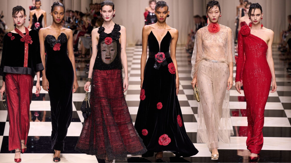 Неделя моды в Милане, прошедшая в феврале 2024 года, стала настоящим праздником моды, где дизайнеры со всего мира представили свои самые смелые и креативные творения. Одной из главных тем сезона стала игра с пропорциями. Дизайнеры экспериментировали с пышными силуэтами, объемными рукавами и укороченными топами, создавая образы, одновременно женственные и дерзкие. Еще одним трендом стало использование богатых материалов. На подиумах блистали платья из шелка, бархата, тафты и кружева, украшенные вышивкой, перьями и драгоценными камнями. Не обошлось и без экспериментов с цветом. Помимо классических черного, белого и красного, дизайнеры использовали яркие и насыщенные цвета, такие как фуксия, изумрудный и фиолетовый. Мы считаем, что без сравнения с некоторыми коллекциями осень-зима 2023/24 эта статья была бы не полной, поэтому предлагаем с них и начать. Armani Privé представил коллекцию «Le temps des roses» для осеннеезимнего сезона 2023-2024 годов. Она в очередной раз продемонстрировала