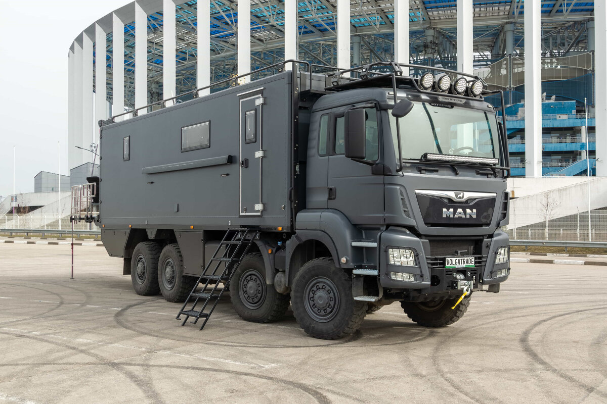 MAN TGS 8х8 - не просто премиум-автодом, а многокомнатная квартира, уютная и современная. Данный проект удивляет не только историей преображения из самосвала в жилой модуль, но и своей комплектацией! Здесь организованы кухонный блок, гостиная зона, спальня, комната отдыха, санузел, душевая и даже хамам! Помимо этого нельзя не упомянуть летнюю кухню и заднюю подъёмную конструкцию, которая одновременно служит балконом-террасой, держателем запасного колеса и платформой для перевозки техники. Однозначно один из самых насыщенных и технически сложных проектов нашей компании. Мечта об автодоме, которая сбылась! ⚠️Коротко о проекте: · Шасси MAN TGS 8х8 · Фургон из сэндвич-панелей 7750х2400х2000мм. Утепление стен 60мм, пола – 120мм · Задняя подъёмная конструкция, которая одновременно служит балконом-террасой, держателем запасного колеса и платформой для перевозки техники. · Летняя кухня · Багажник на крыше фургона с лестницей · Багажные ящики и отсеки для хранения по периметру · Маркиза-тент ·