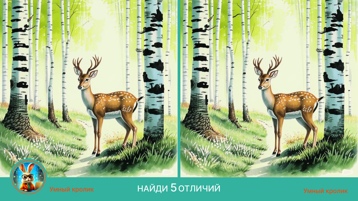 #УмныйКролик #тестнавнимательность #найдиотличие #солнечныйдень #олень #березы #игры #развлечения