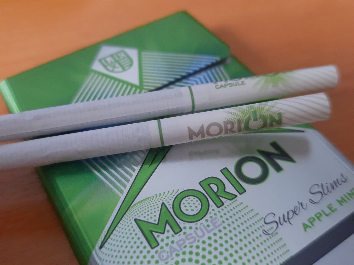 Друзья-товарищи, зная мою увлеченность табачной темой, время от времени приносят мне самые разные сигареты. Порой мне в руки попадает не целая пачка, а уже початая. Как в сегодняшнем обзоре. Это сигареты Morion с вкусовой капсулой ментол-яблоко. Вряд ли бы я сам купил эти сигареты, даже если бы они мне попались на глаза. Ниже поясню, почему. Внимание! Данная публикация предназначена для совершеннолетних граждан. Я не рекламирую табачную продукцию и продавцов, и не пропагандирую курение. Записка основана на личных ощущениях и носит ознакомительный характер. Курение вредит вашему здоровью! Как можно заметить по внешнему виду пачки, сигареты выпущены в Армении. Предупреждающие о вреде курения надписи сделаны на армянском языке. То ли это продукт для внутреннего рынка, то ли заранее «заточен» для контрабанды в другие страны, в том числе в Россию. По словам дамы, которая передала мне эту пачку, она купила ее на одном из городских рынков. Сигареты продавались исключительно блоками. По 850 ру
